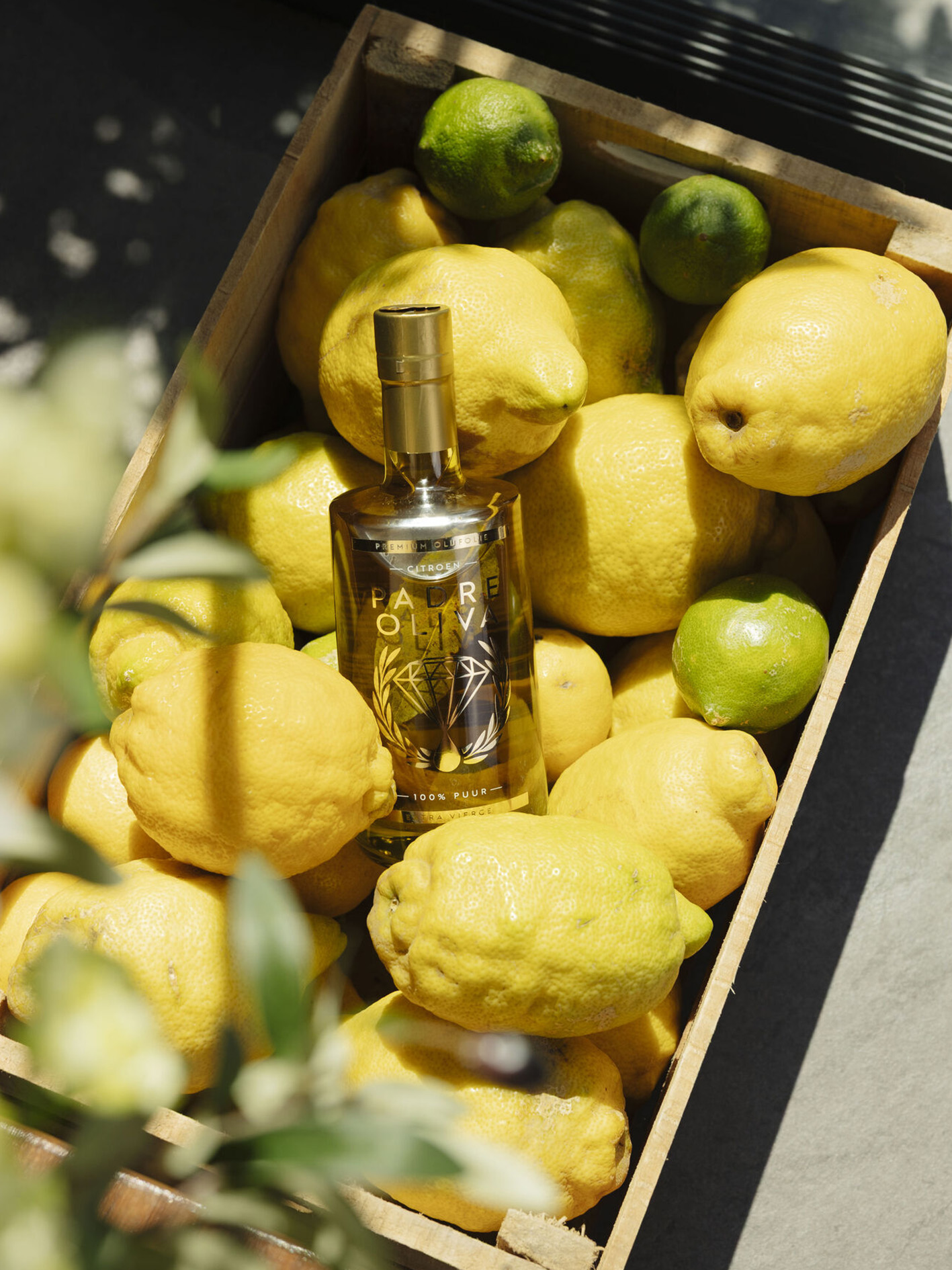 Ingrediënten: Extra vierge olijfolie, citroen, knoflook, olijven en laurier.